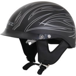 Buy AFX FX-200 Half Motorcycle Helmet Dual Shields Flat Black/Silver Pinstripe Flame XXL Now