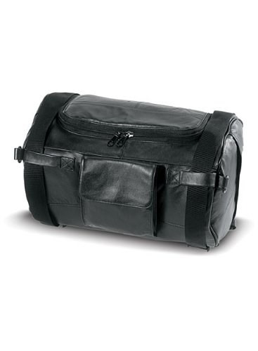 This roll bag is constructed of premium full grain leather. They are fully lined and foam padded. Attaches quickly to sissy bar. It has a dimension of 14 inch length x 10 inch width x 10 inch diameter.